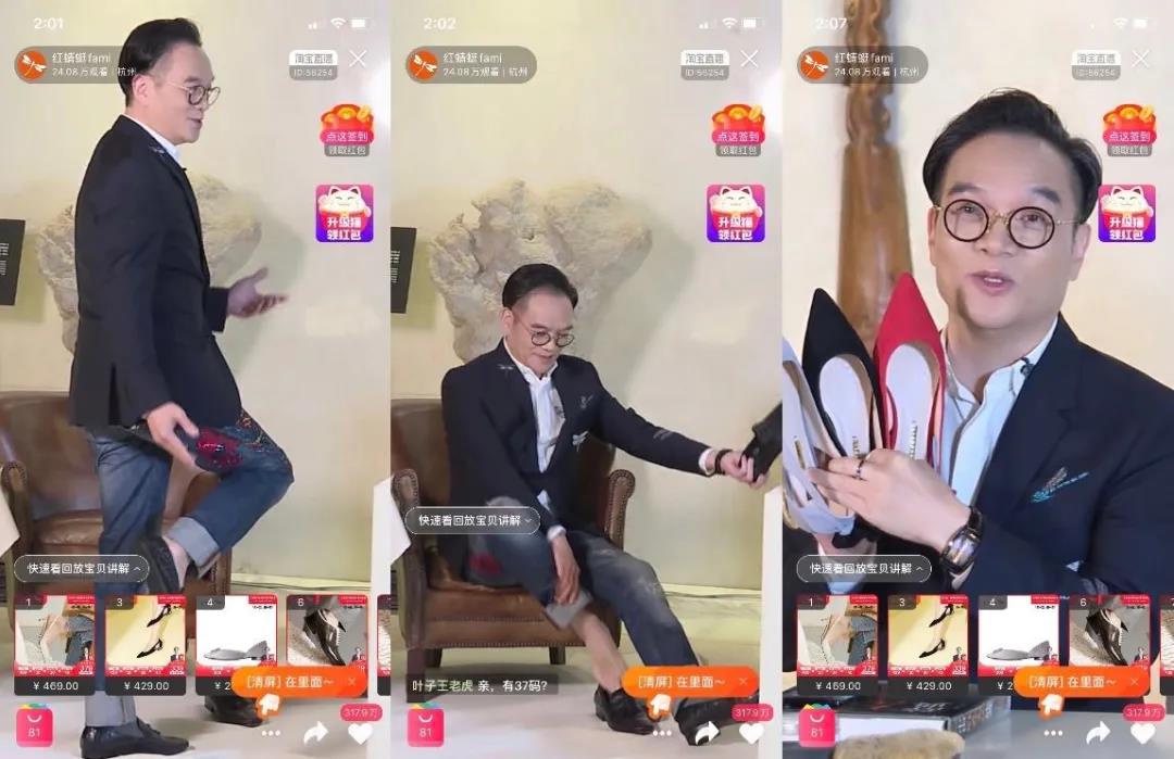 隔壁紅蜻蜓的創(chuàng)始人錢(qián)金波同樣瞄上了直播。三月八日,這位精致的董事長(zhǎng)西裝革履,頭發(fā)梳地一絲不茍,然后對(duì)著鏡頭脫下了鞋襪,為網(wǎng)友們?cè)嚧┬印?/span>